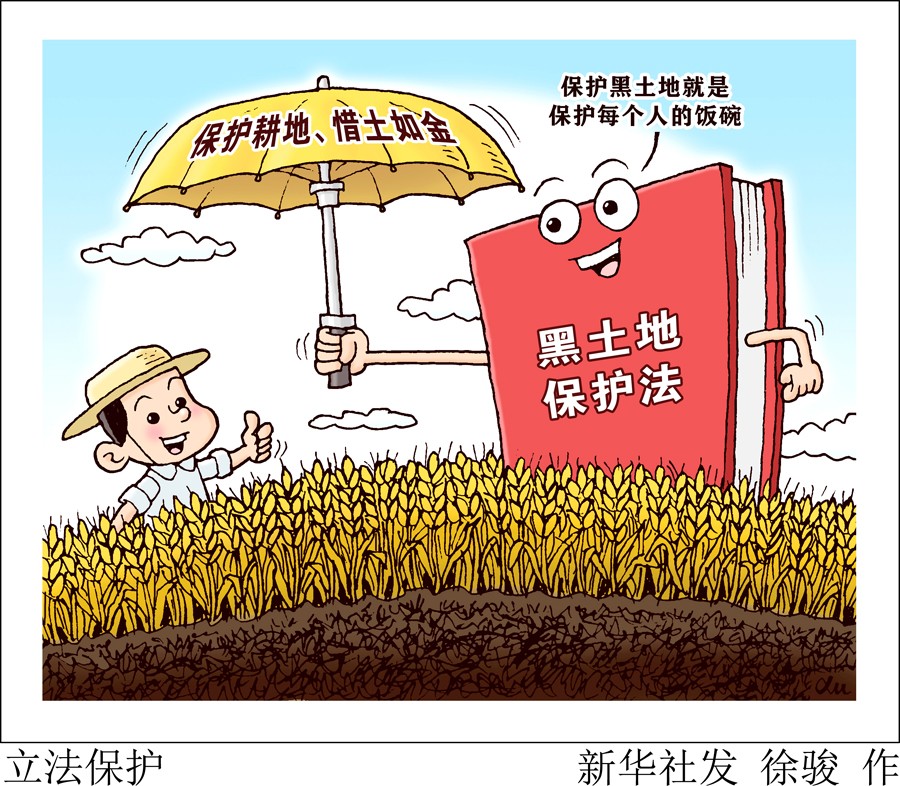 歷經(jīng)三次審議,十三屆全國(guó)人大常委會(huì)第三十五次會(huì)議6月24日表決通過(guò)黑土地保護(hù)法。以“小快靈”專門(mén)立法保護(hù)“耕地中的大熊貓”,釋放了保護(hù)耕地、惜土如金的重要信號(hào)。