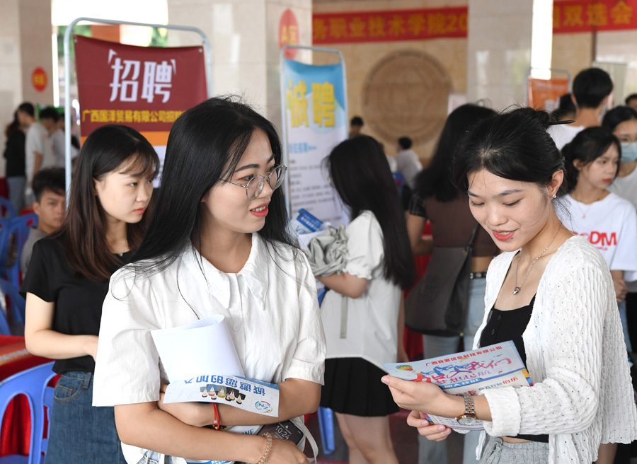 7月2日,廣西國際商務職業(yè)技術學院學生在校園雙選會上求職。