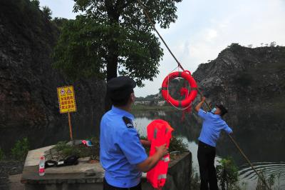 眼下,安徽省巢湖市已進入汛期,該市公安局在巢湖岸邊、水庫和野溝塘壩,以加強巡查、安全宣傳、增設標志牌、擺設救生裝備等一系列措施,做好預防溺水工作。 圖為7月4日,民警增設救生裝備。 法治日報通訊員 楊祖友 攝