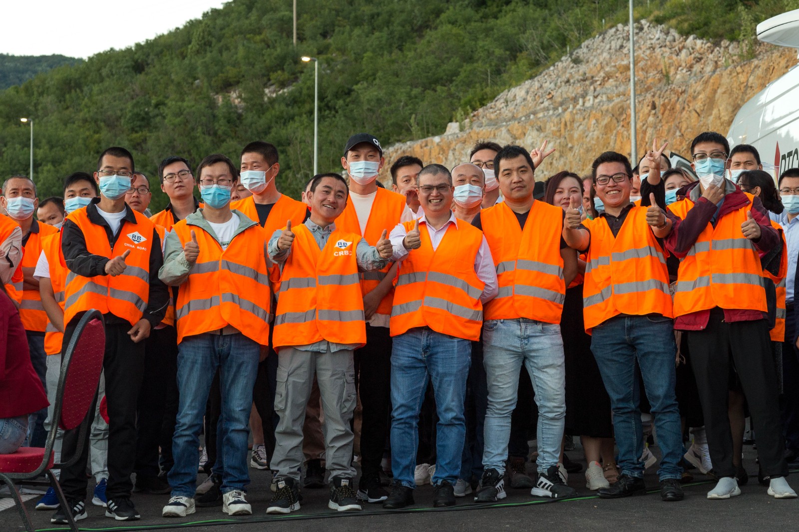 7月13日,在黑山首都波德戈里察,中企員工出席黑山南北高速公路優(yōu)先段通車(chē)儀式。