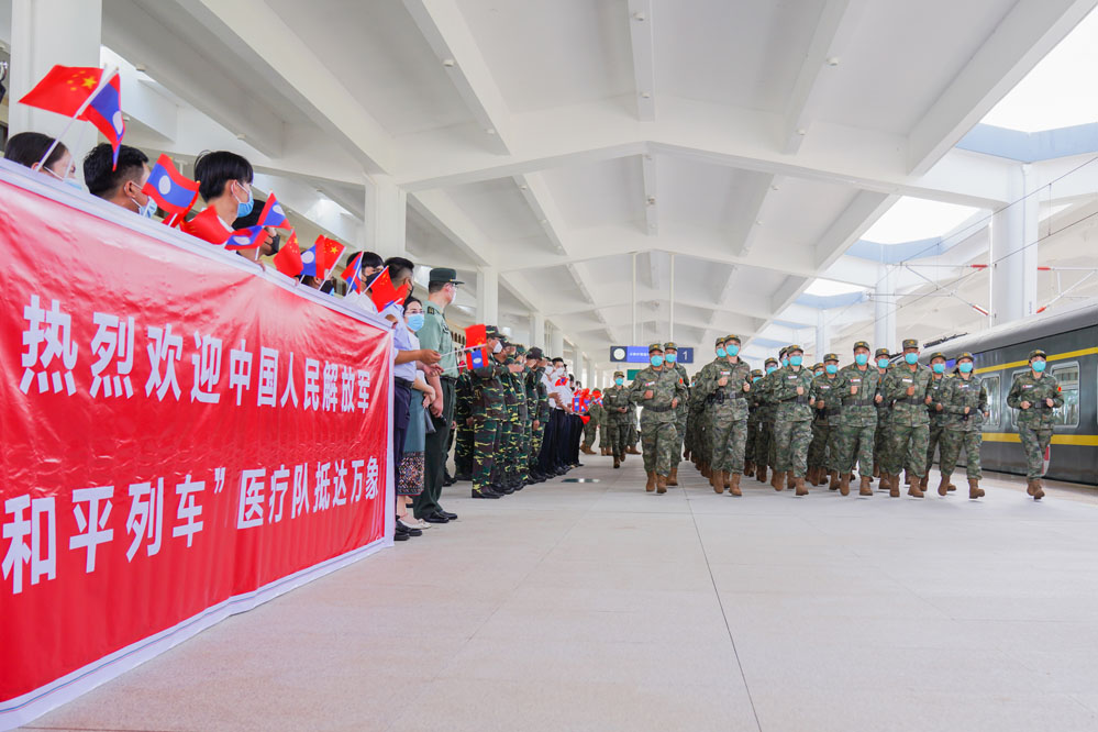 參加“和平列車-2022”人道主義醫(yī)學(xué)救援聯(lián)合演習(xí)暨醫(yī)療服務(wù)活動(dòng)的中方衛(wèi)勤分隊(duì)搭乘我軍衛(wèi)生列車,經(jīng)川黔線、滬昆線和中老鐵路,19日抵達(dá)老撾首都萬象。