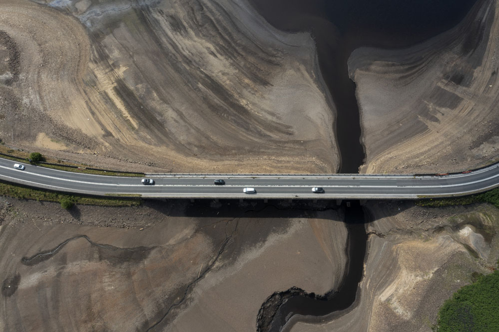 這是7月19日在英國曼徹斯特附近拍攝的幾近干涸的伍德黑德水庫(無人機(jī)拍攝)。