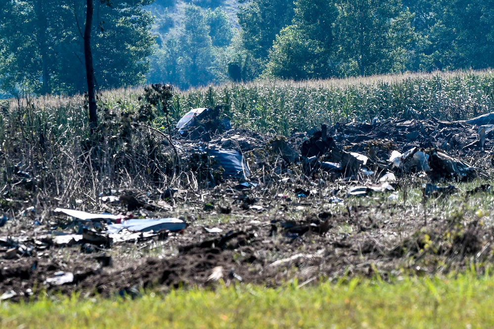 這是7月17日在希臘北部城市卡瓦拉附近農(nóng)田拍攝的飛機(jī)殘片。