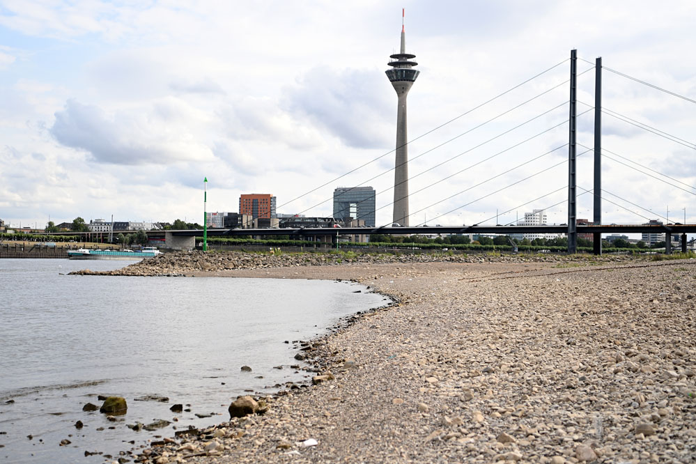 受高溫和干旱影響,德國萊茵河水位下降。