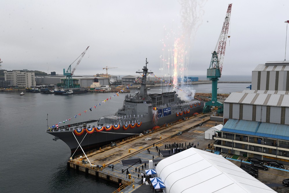 韓國軍方28日在位于蔚山的現(xiàn)代重工總部,為新一代宙斯盾驅(qū)逐艦“正祖大王”號舉行下水儀式。 據(jù)韓國防衛(wèi)事業(yè)廳當天發(fā)布的消息,8200噸級的“正祖大王”號艦體長170米,寬21米,雖然體積較本國“世宗大王”號宙斯盾驅(qū)逐艦變大,但加強了隱身性能。該艦裝備了新式宙斯盾導彈防御系統(tǒng),提高了對彈道導彈的探測及追蹤能力,同時計劃配備遠程艦空導彈?!罢娲笸酢碧栠€配有尖端綜合聲吶系統(tǒng),提高了對潛艇及魚雷的探測能力;配備遠程反潛魚雷和輕型魚雷,能適時發(fā)動反潛攻擊。