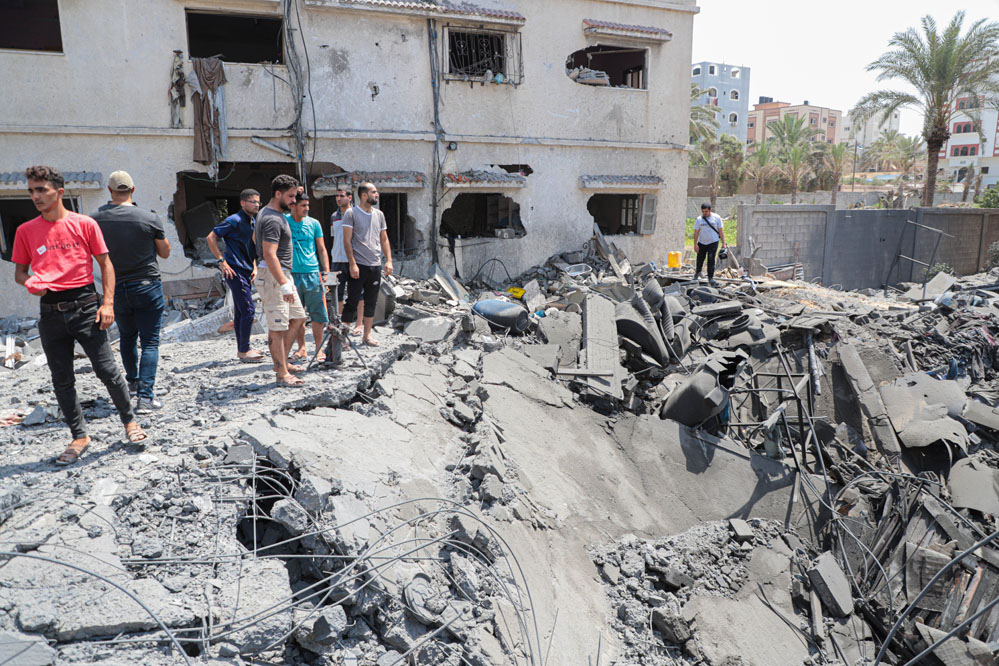 8月6日,人們在加沙城查看空襲后的廢墟。