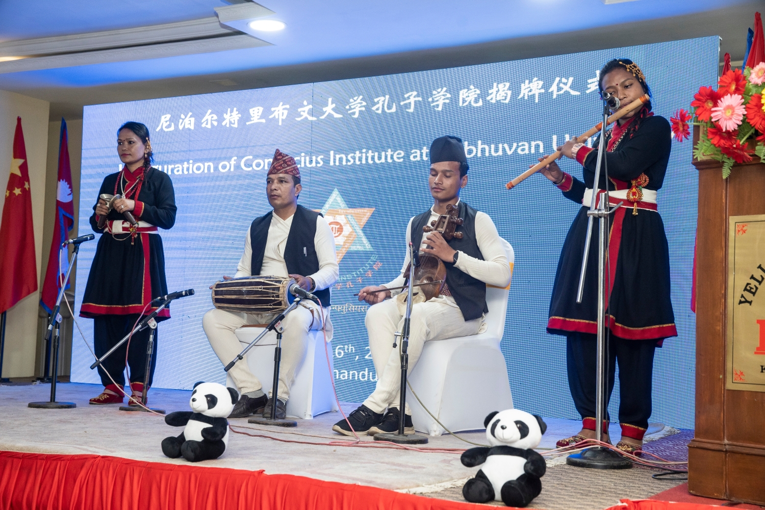 8月16日,表演者在尼泊爾加德滿(mǎn)都舉行的孔子學(xué)院揭牌儀式上演奏。