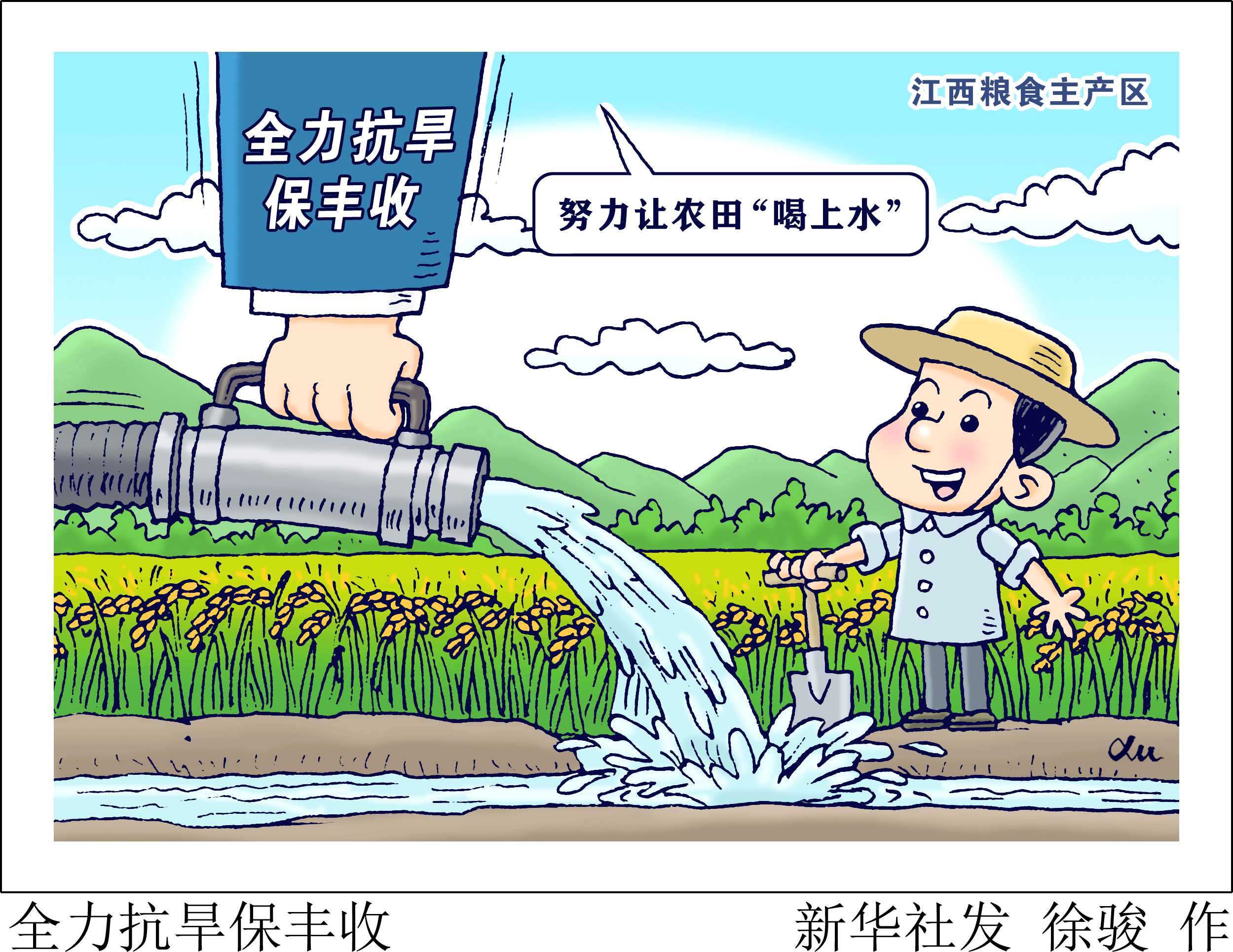 7月下旬以來,南方多地出現(xiàn)高溫少雨天氣,旱期疊加高溫?zé)岷?,對秋糧生產(chǎn)造成威脅。江西是我國糧食主產(chǎn)區(qū)之一,當(dāng)?shù)馗刹咳罕娡ㄟ^打井、清溝、引水、提灌等方式,讓農(nóng)田“喝上水”,想方設(shè)法抗旱保秋糧豐收。