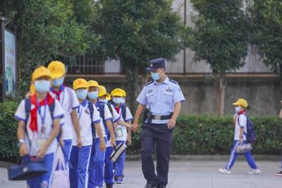 秋季開學季,浙江省舟山市公安局普陀區(qū)分局展茅派出所民警、展茅向陽小學法治副校長雷鵬多次走進學校,開展安全檢查,為保安人員警務實戰(zhàn)技能培訓,與老師一起到學生家中走訪。