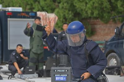 圖為8月22日,涉爆處置小組特警在進行爆炸物處置演練。