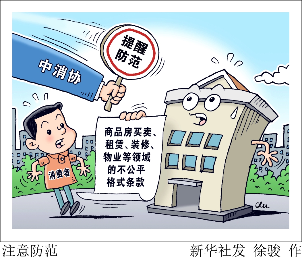 聚焦商品房買賣、租賃、裝修、物業(yè)等領(lǐng)域的不公平格式條款,中消協(xié)9月21日發(fā)布點(diǎn)評(píng),提醒消費(fèi)者注意防范。