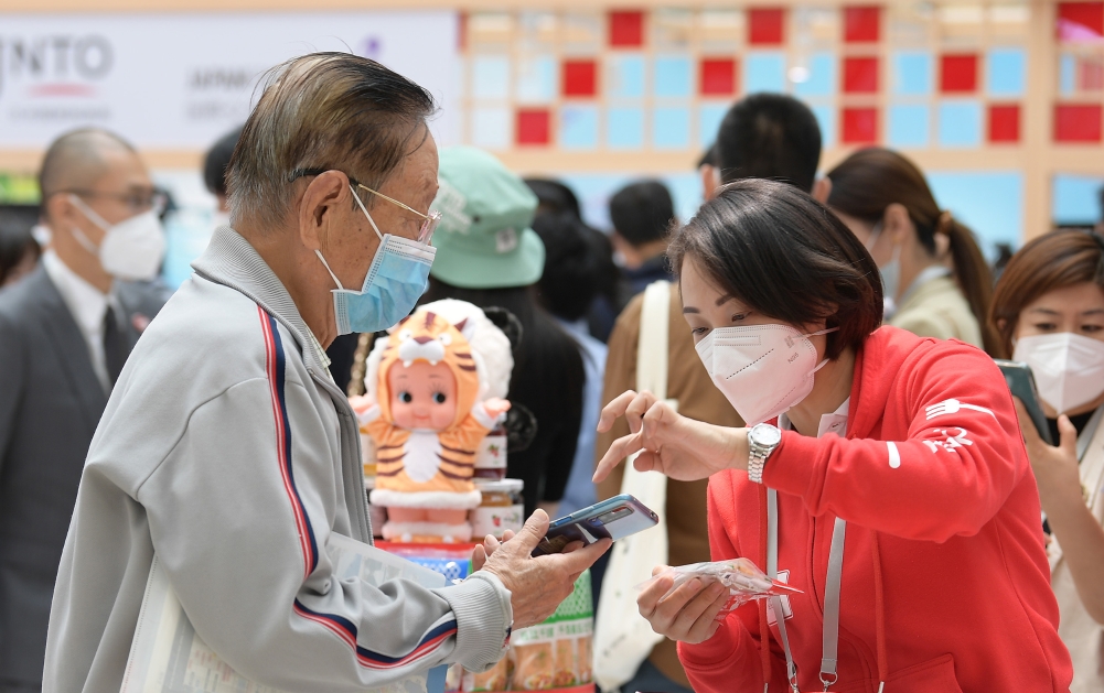 9月24日,游客在日本企業(yè)展臺(tái)前咨詢。