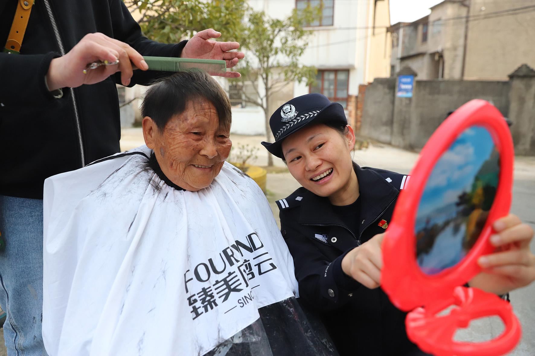 3月1日,浙江省臺州市公安局路橋分局路橋派出所社區(qū)民警與義警來到社區(qū)敬老院,免費幫老人理發(fā),向老人宣傳安全防范知識。