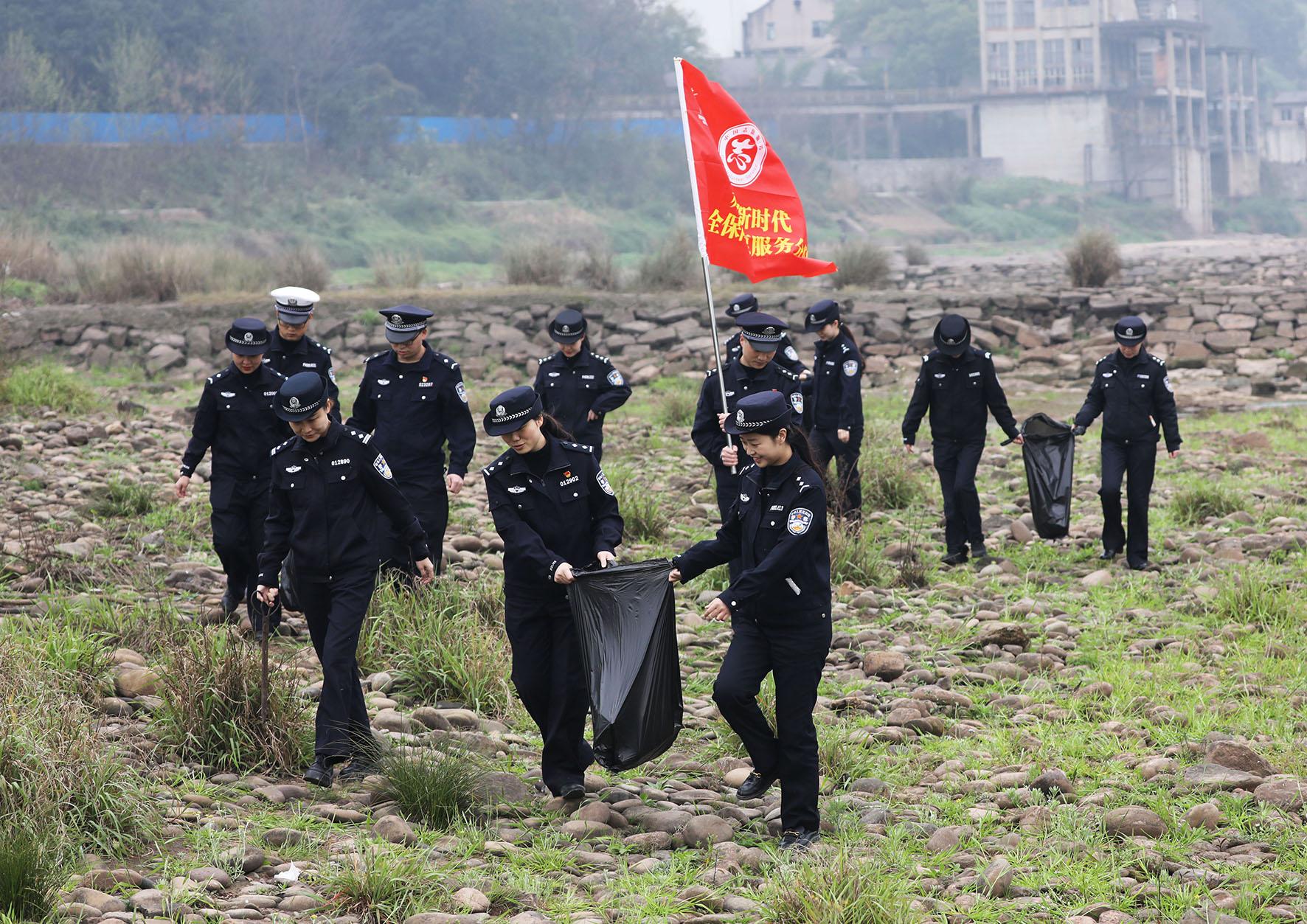 圖為黨員民輔警在赤水河岸邊清理垃圾。