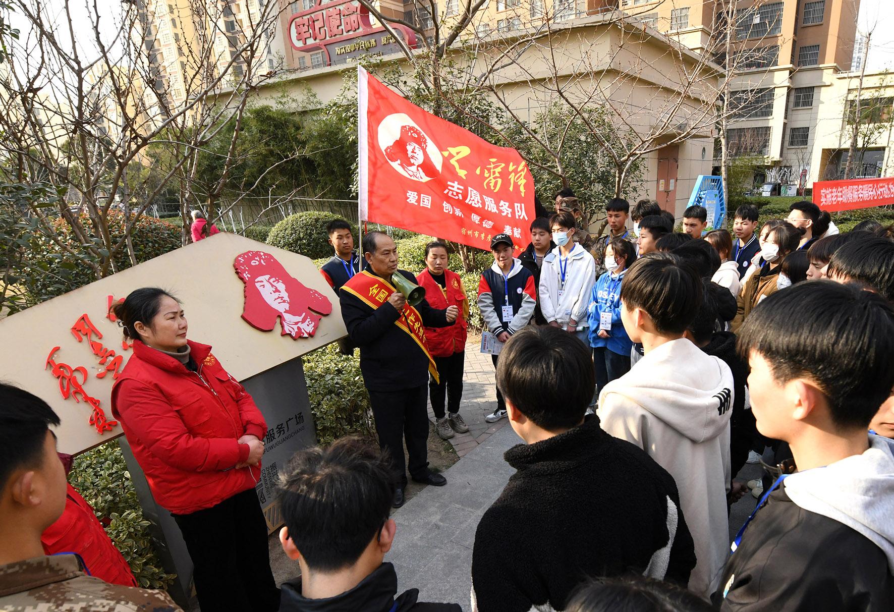 3月2日,安徽省宿州市埇橋區(qū),普法宣傳志愿者在社區(qū)向青少年學(xué)生講解雷鋒生平事跡。