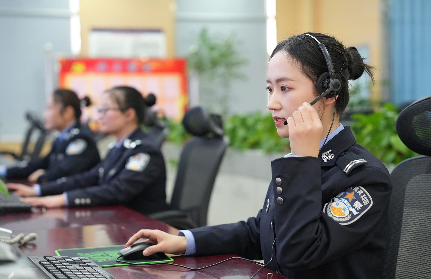3月8日,陜西省渭南市合陽(yáng)縣公安局指揮中心大廳,女民警李朵和同事們?cè)趰徫簧隙冗^(guò)自己的節(jié)日。