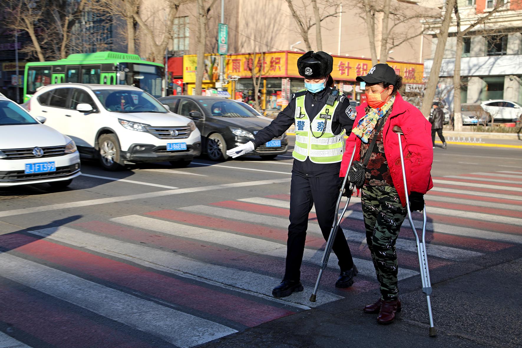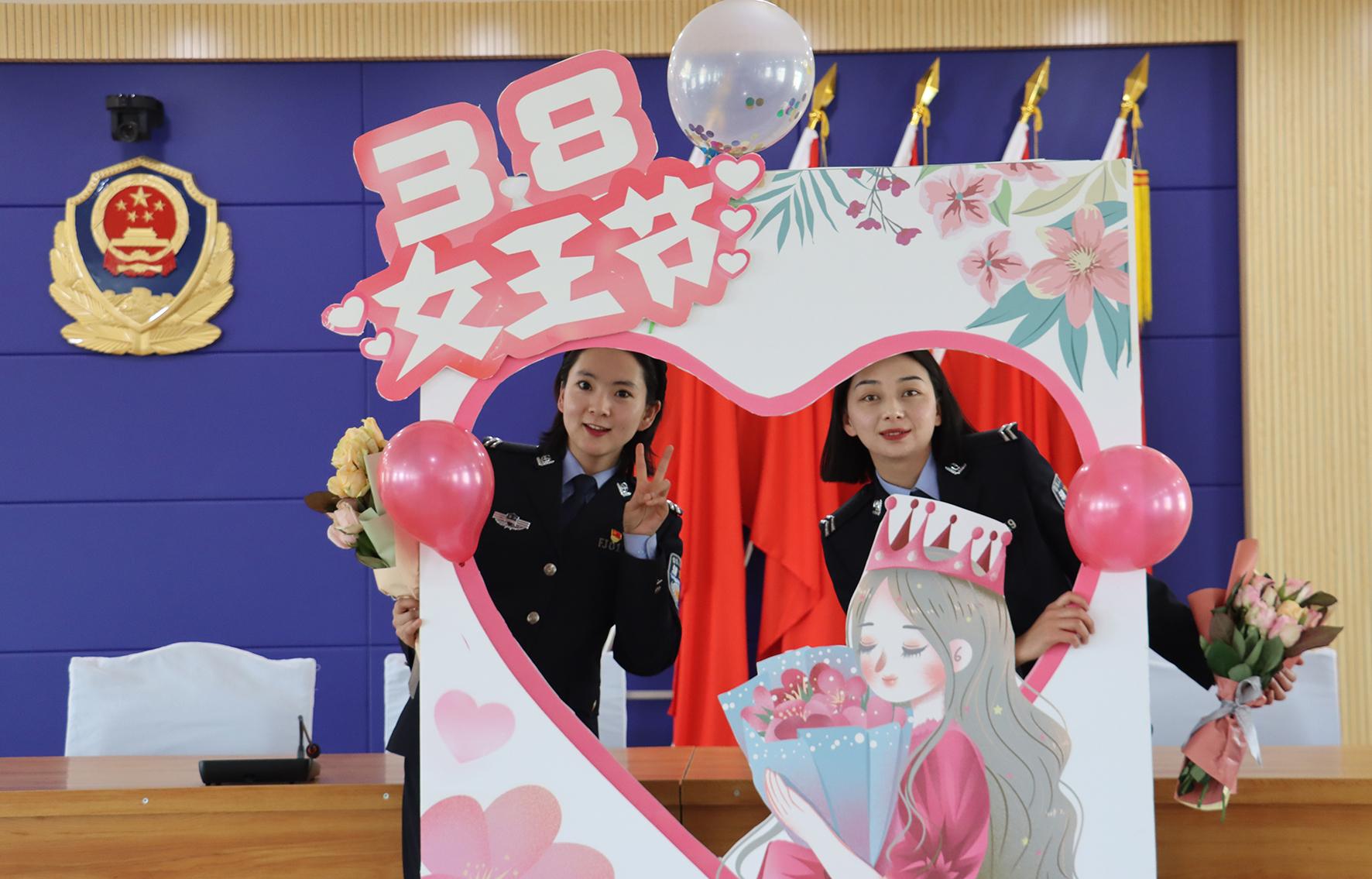 3月8日,遼寧省阜新市公安局交警支隊(duì)海州大隊(duì)的女民警、女輔警在崗位上度過(guò)“三八”節(jié)。