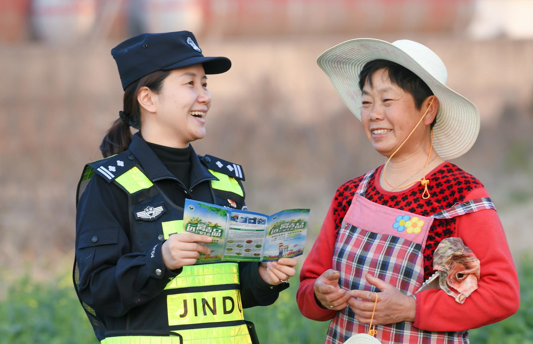 3月7日,安徽省馬鞍山市和縣公安局禁毒大隊(duì)女民警在田間開(kāi)展“春季毒品源植物禁種”普法宣傳。