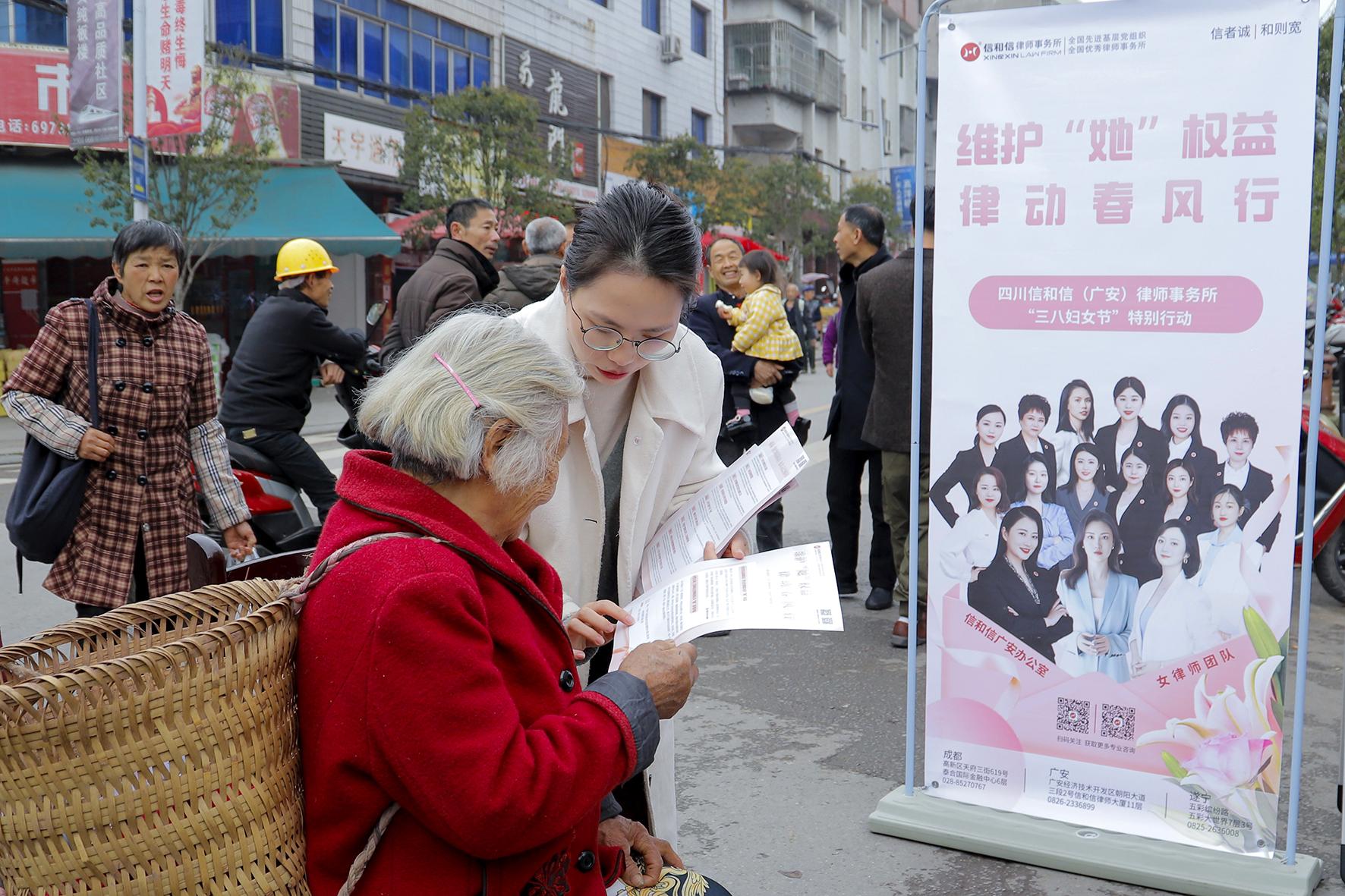 3月7日,四川省廣安市前鋒區(qū)婦聯(lián)聯(lián)合政法單位利用鄉(xiāng)鎮(zhèn)趕場(chǎng)日開(kāi)展“三八”維權(quán)周法治宣傳活動(dòng)。