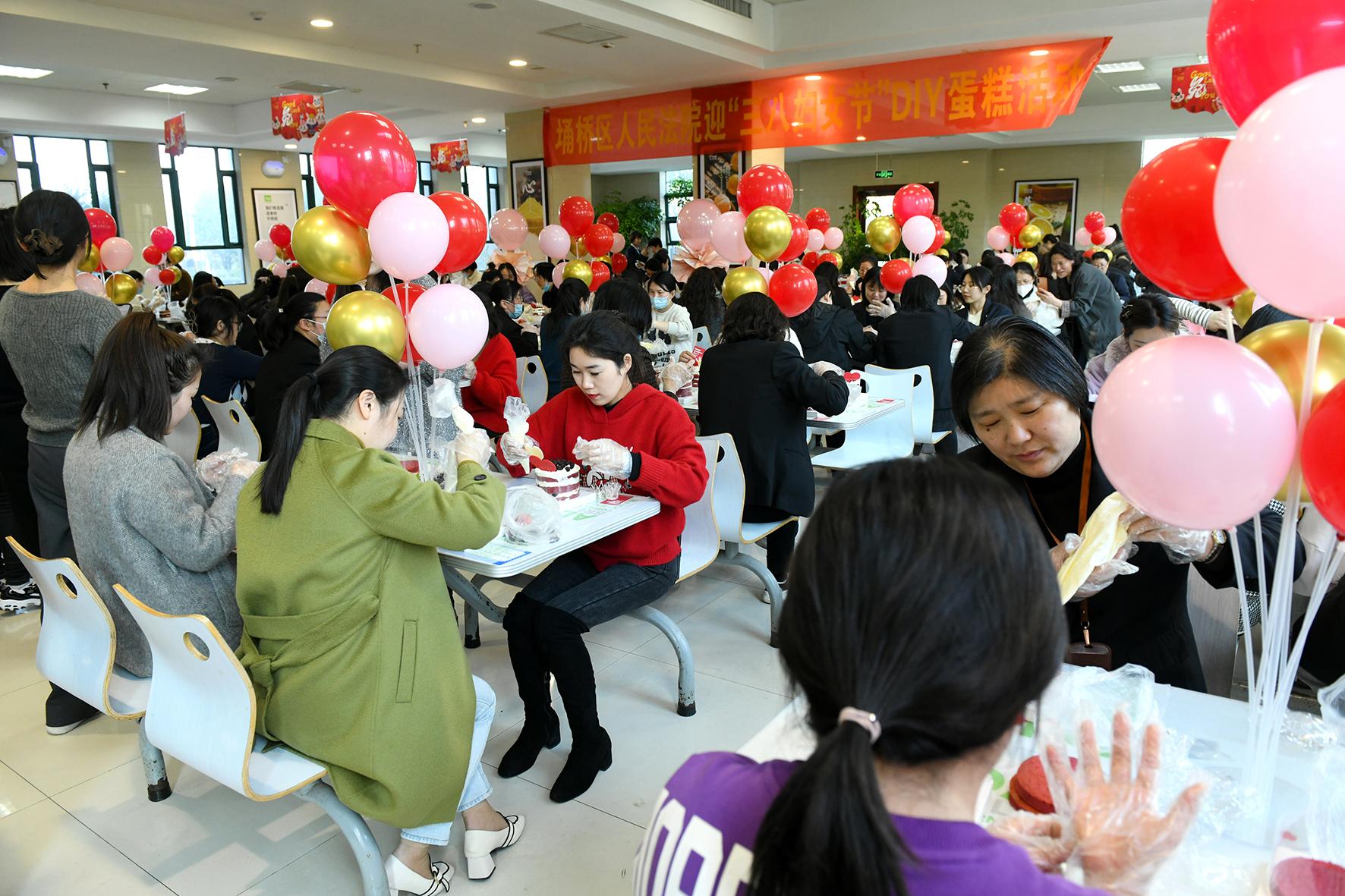 3月7日,安徽省宿州市埇橋區(qū)人民法院工會(huì)組織全體女干警舉辦迎“三八”主題活動(dòng),女干警和后勤人員在糕點(diǎn)技師帶領(lǐng)下學(xué)習(xí)蛋糕制作技藝。