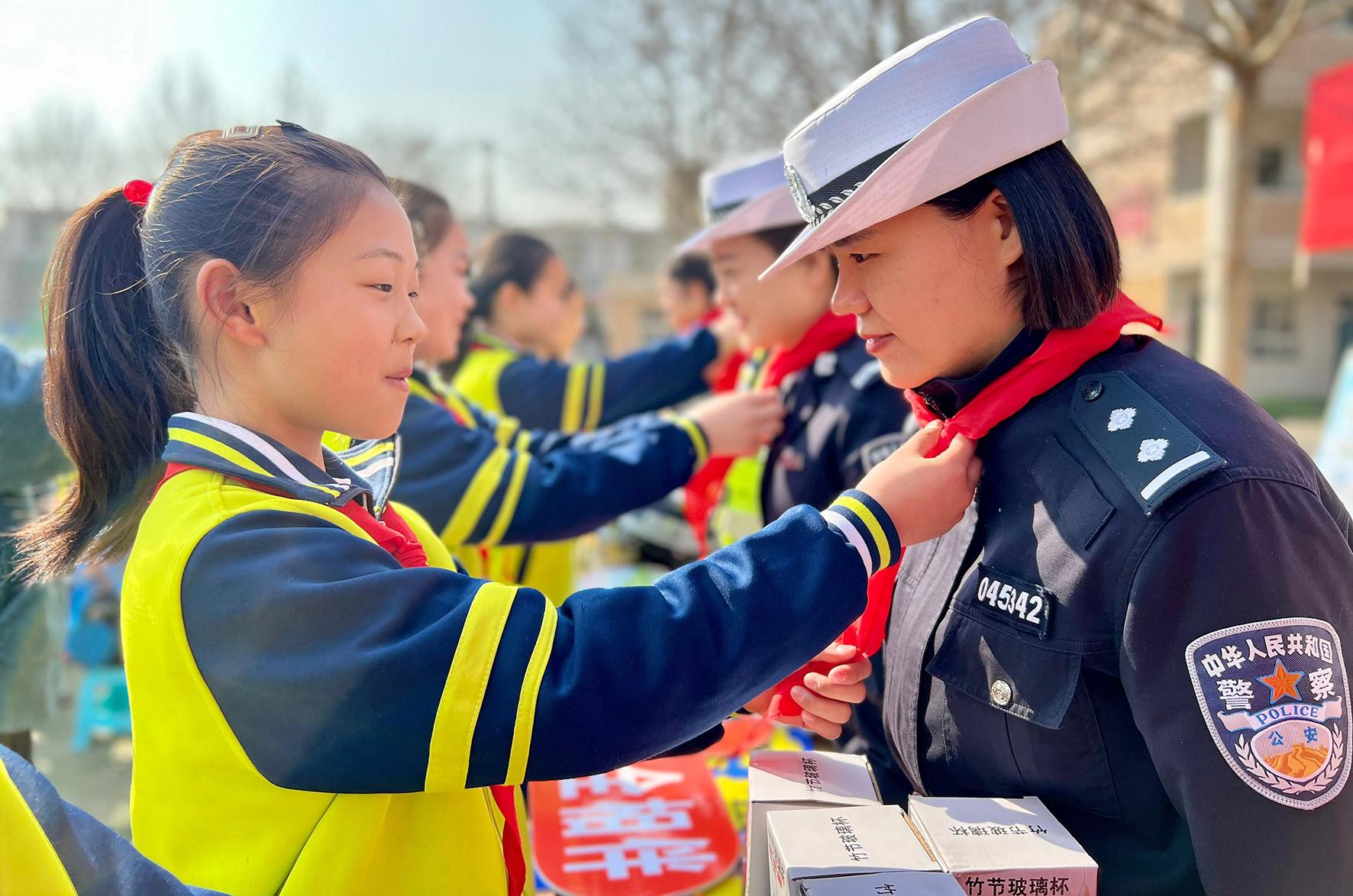 3月7日,陜西省渭南市蒲城縣公安局交通管理大隊(duì)女民警走進(jìn)祥塬小學(xué)開(kāi)展交通安全“春季守護(hù)行動(dòng)”。