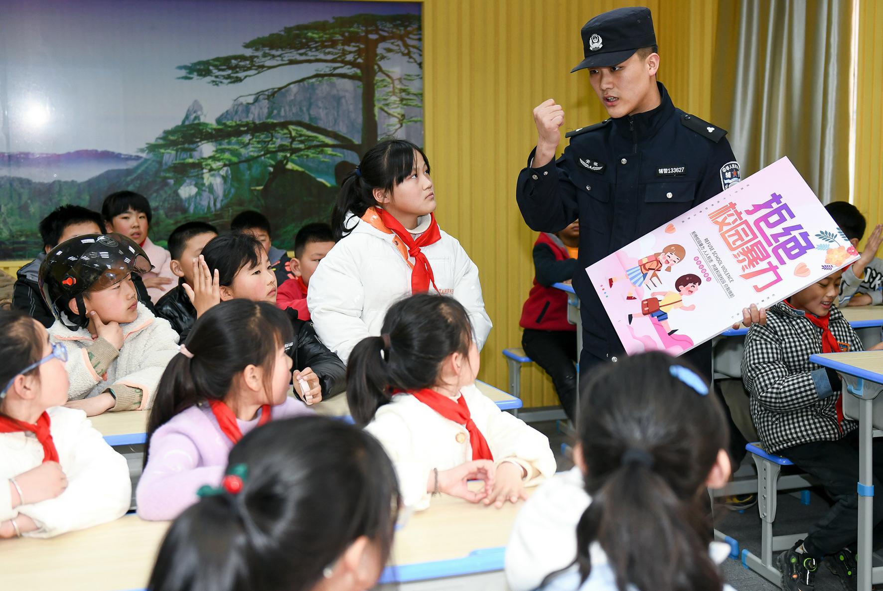 3月27日,安徽省馬鞍山市和縣公安局石楊派出所民警在石楊鎮(zhèn)中心小學開展“拒絕校園暴力”法治講座。
