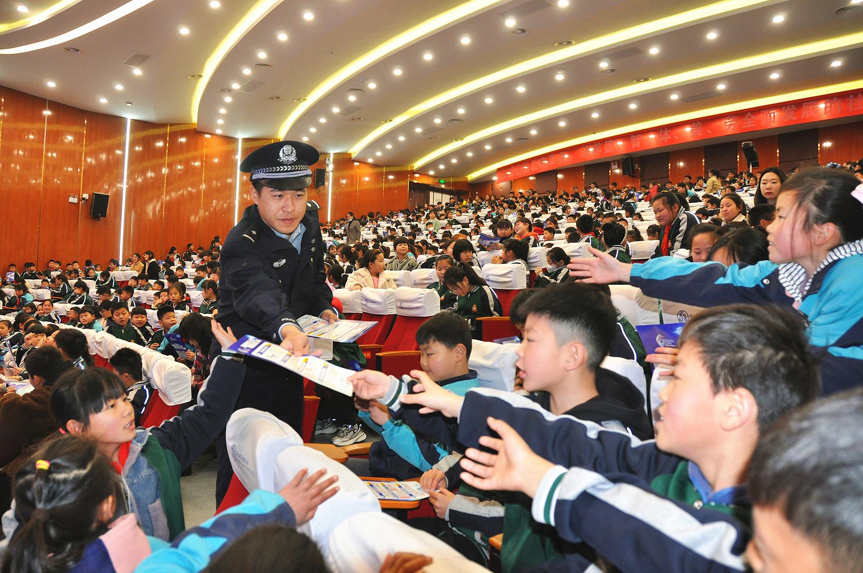 3月27日,江蘇省徐州市民主實驗學校與徐州市公安局交警支隊鼓樓大隊二中隊聯合開展以“交通安全知識進校園”為主題的宣傳教育活動,引導小學生知危險會避險、安全文明出行。