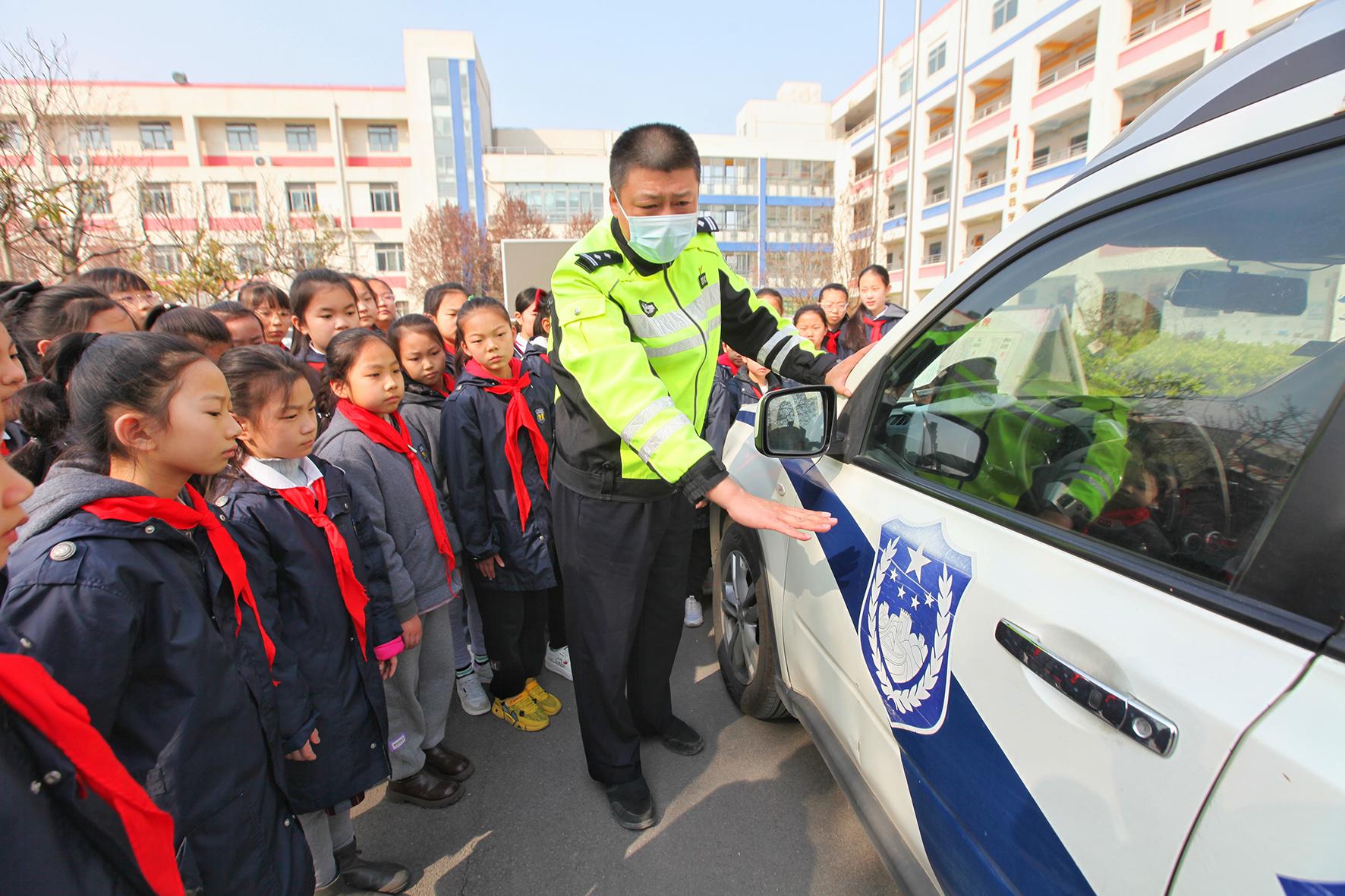 3月27日,安徽省巢湖市公安局交警大隊輔警走進胡崗小學,開展交通安全教育。
