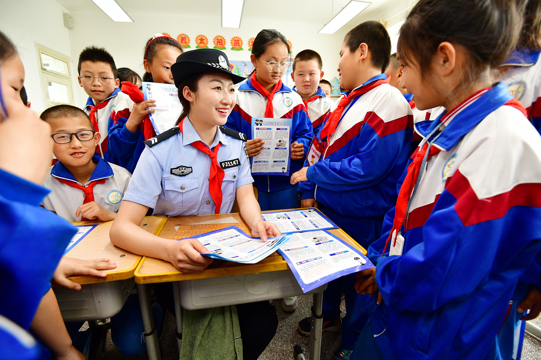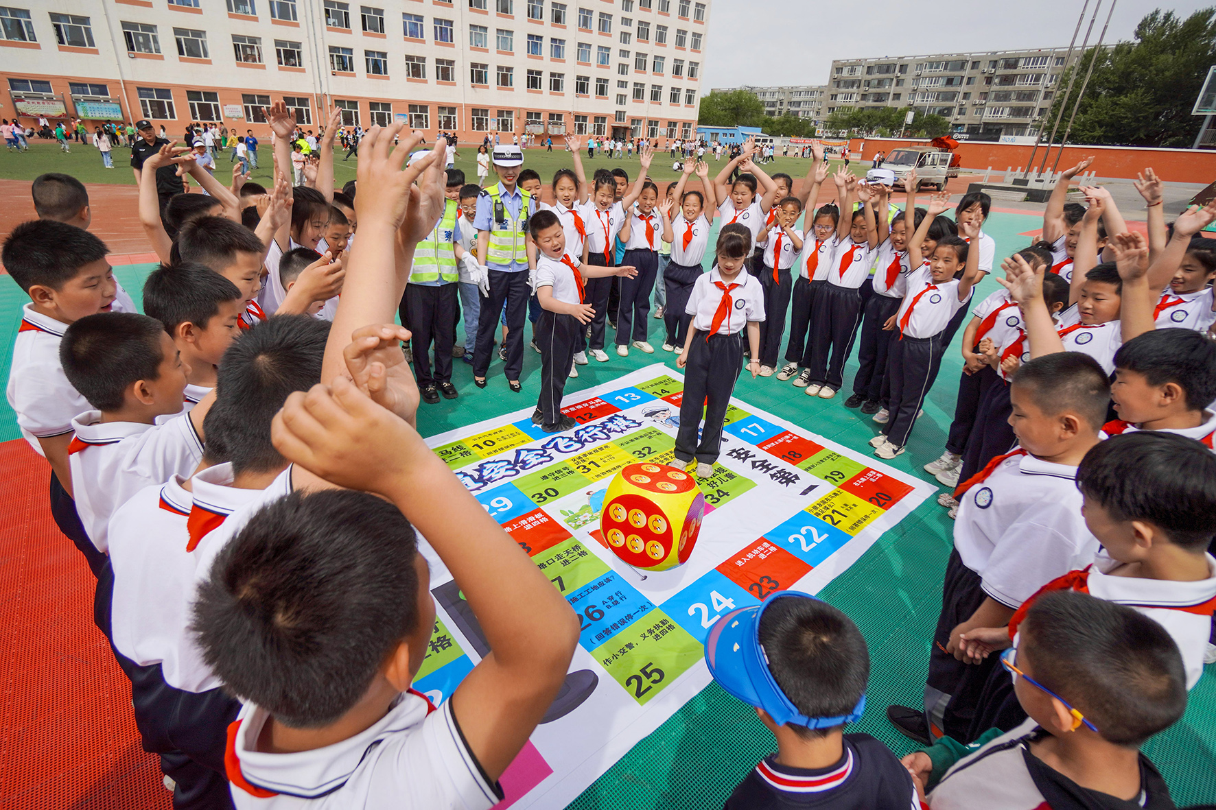 5月30日,遼寧省阜新市公安局交警支隊(duì)太平大隊(duì)民警來到轄區(qū)小學(xué)校,與同學(xué)們一起在互動(dòng)游戲中學(xué)習(xí)交通安全知識(shí)。