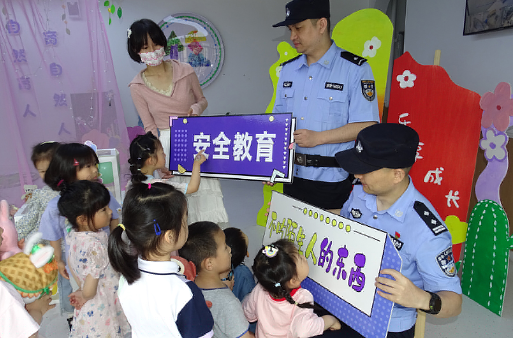 5月29日,河南省??h公安局白寺派出所民輔警走進(jìn)轄區(qū)幼兒園,通過游戲互動(dòng)方式,面對(duì)面向小朋友講述各類安全防護(hù)知識(shí),為孩子們送上節(jié)日平安禮包。
