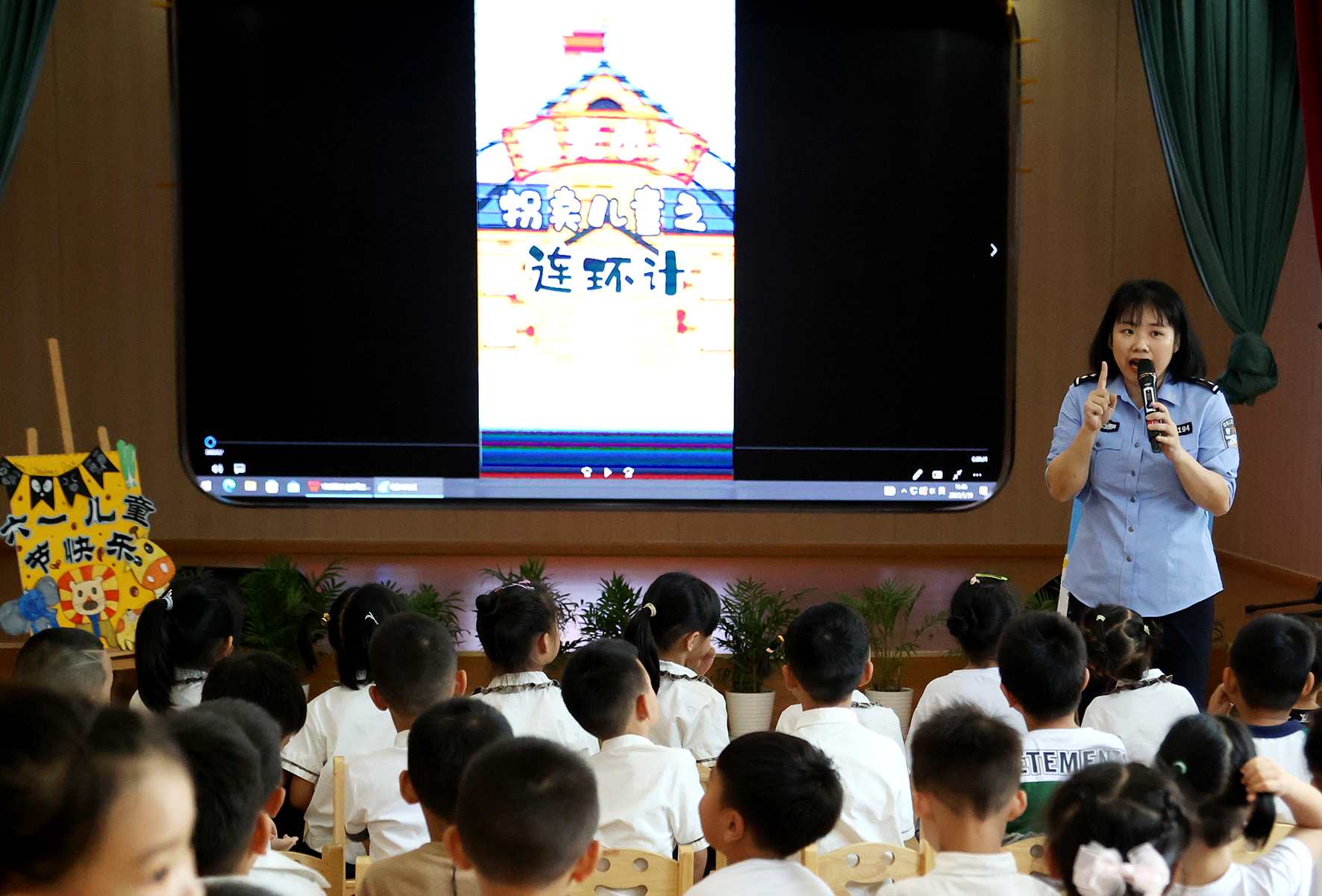 5月30日,江西省共青城市公安局民警來到轄區(qū)健康城幼兒園,為孩子們送上一堂精彩的平安教育課。