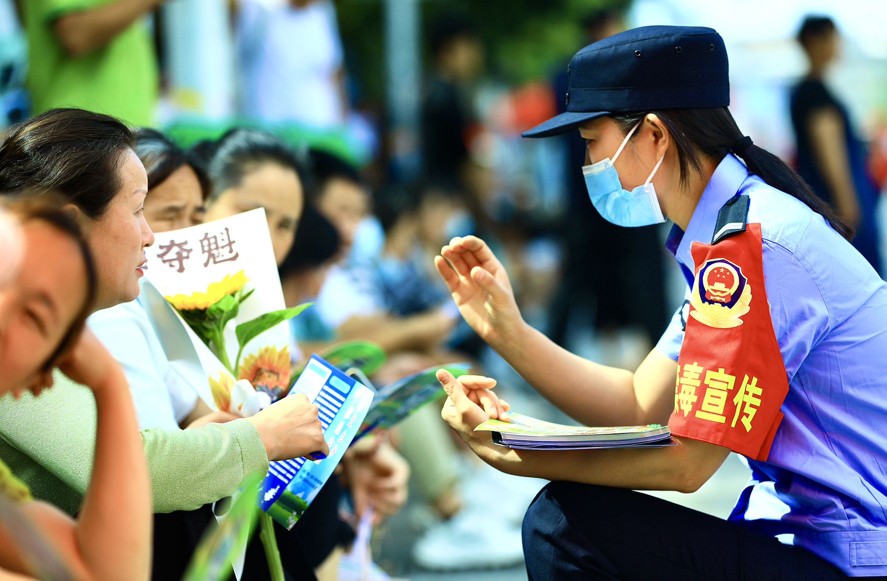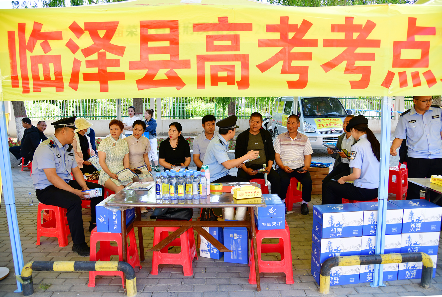 6月7日,甘肅省臨澤縣公安局開發(fā)區(qū)派出所民輔警在執(zhí)勤間隙,向考場(chǎng)外等候的家長(zhǎng)宣傳反詐知識(shí)。