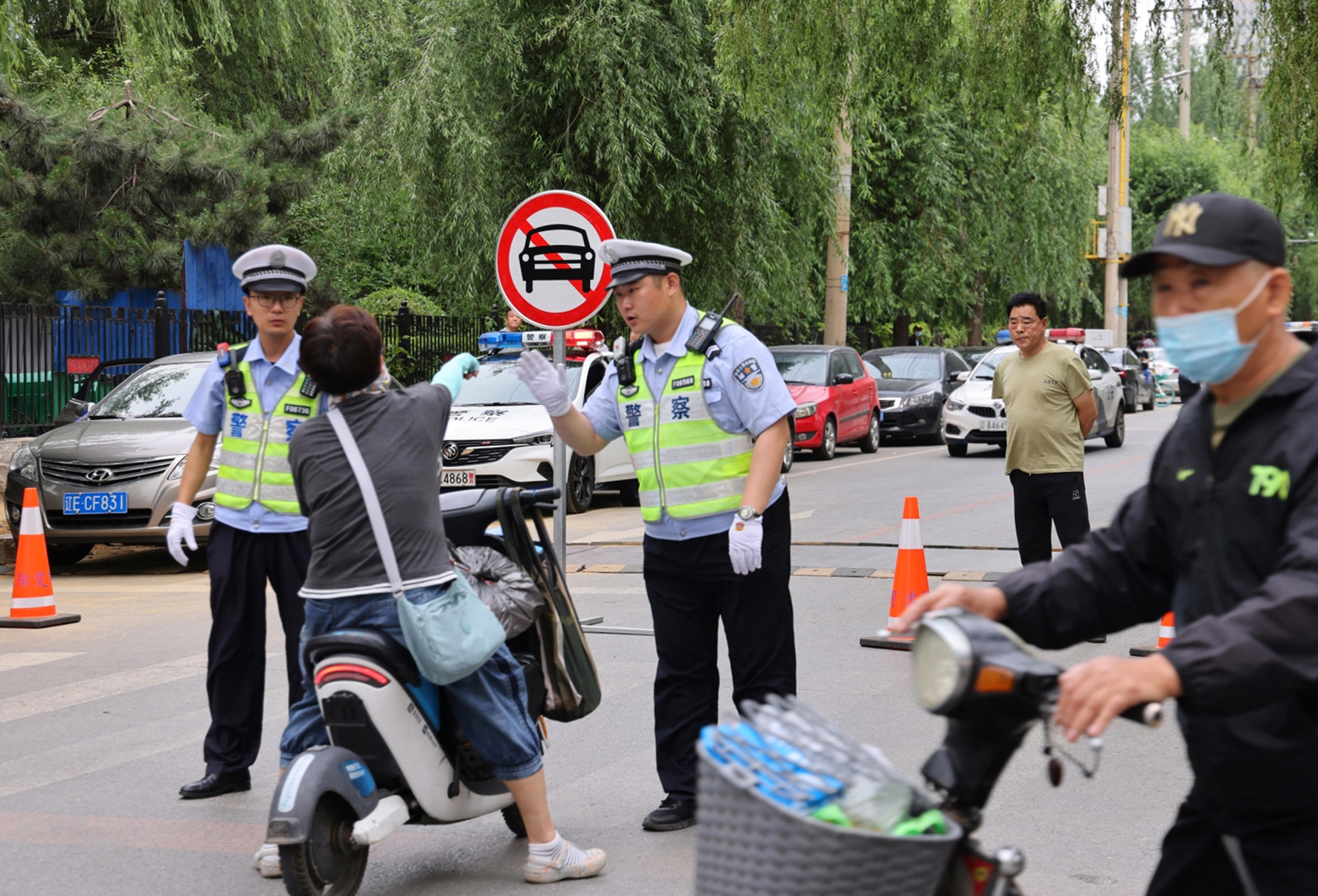 6月7日,遼寧省沈陽(yáng)市公安局交通警察局民輔警在考點(diǎn)周邊疏導(dǎo)交通,服務(wù)考生。