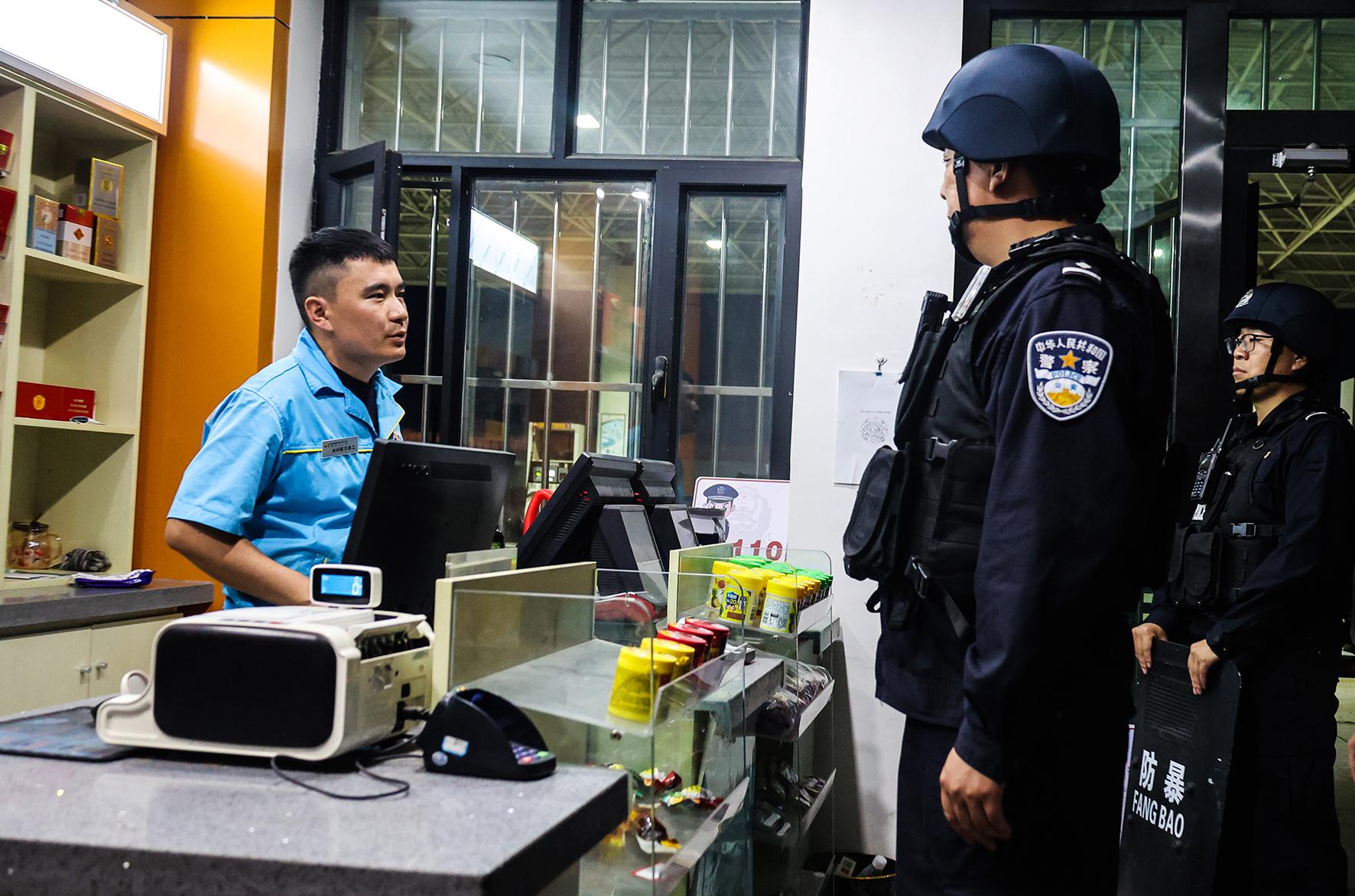 7月9日夜,安徽省舒城縣公安局城中派出所組織警力在縣城區(qū)人員密集場所加強(qiáng)巡邏守護(hù)。