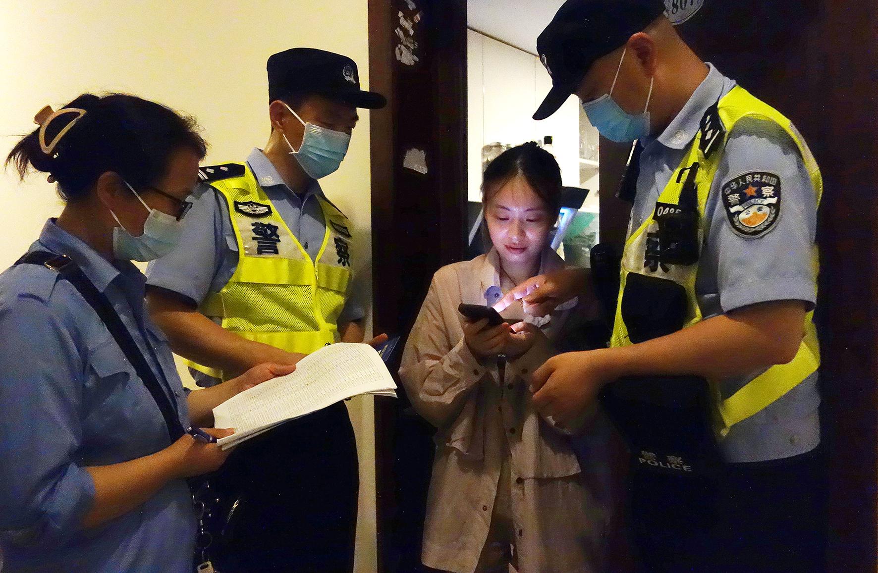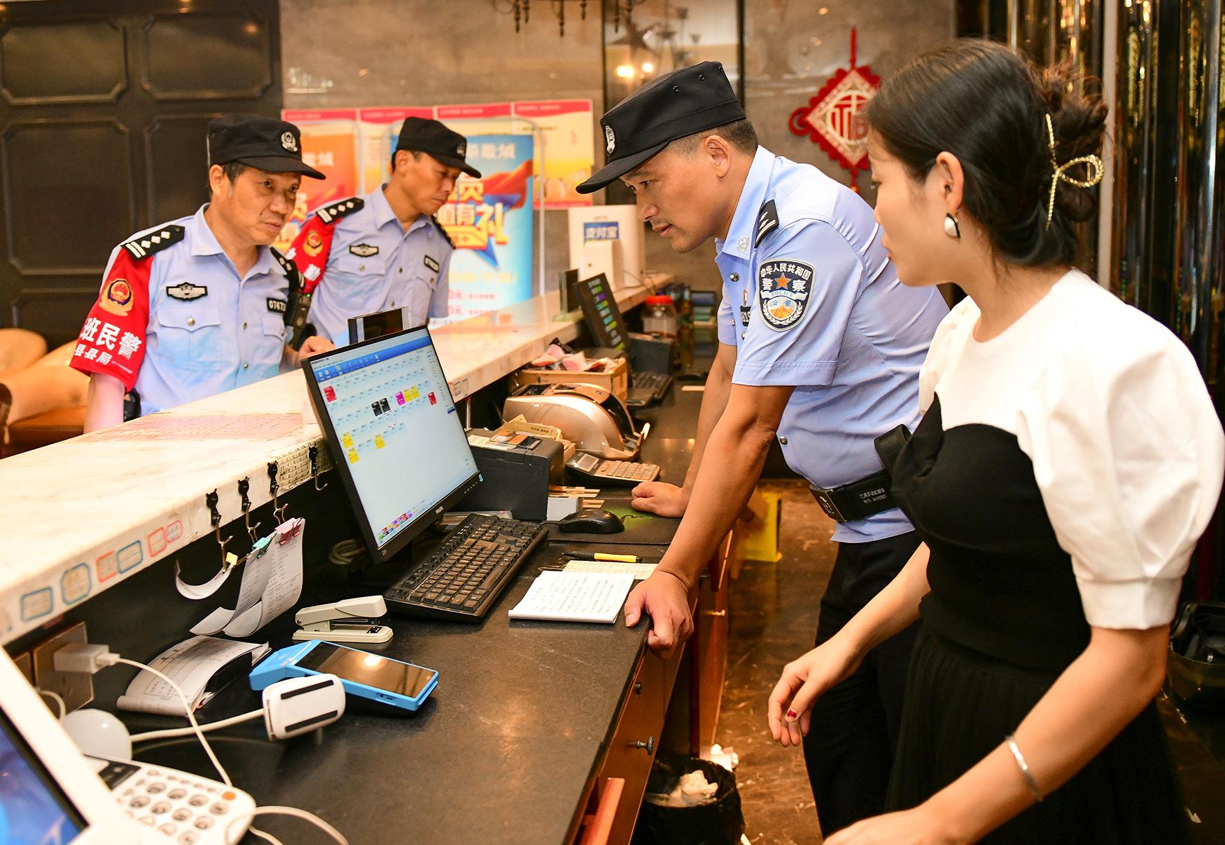 7月9日晚,安徽省馬鞍山市和縣公安局民警正在對歌廳、網(wǎng)吧等行業(yè)場所開展檢查,及時(shí)發(fā)現(xiàn)并消除治安隱患。