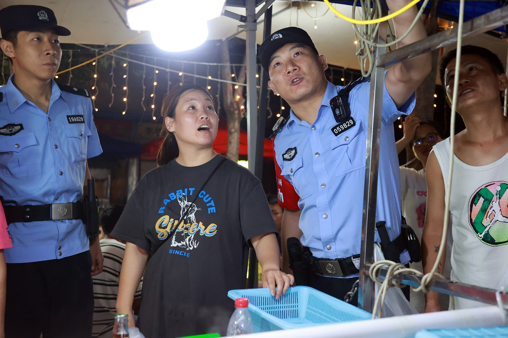 8月11日,安徽省合肥市公安局瑤海分局開展夏夜治安巡查宣防第二次集中統(tǒng)一行動(dòng),組織警力在轄區(qū)夜市排檔、商業(yè)街區(qū)等地段開展定點(diǎn)值守和動(dòng)態(tài)巡邏,全面提升見警率、管事率和震懾率,切實(shí)增強(qiáng)人民群眾安全感。