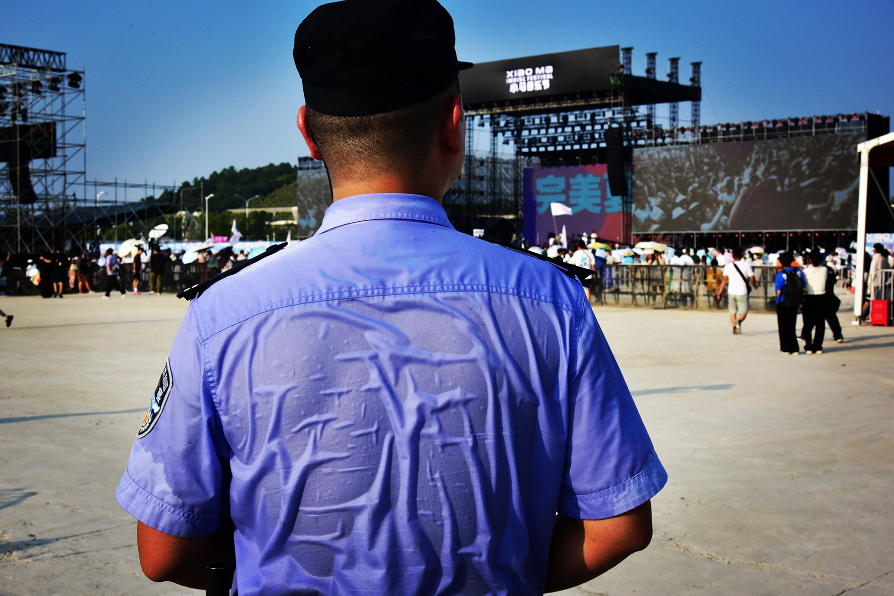 8月12日,安徽省當(dāng)涂縣公安局民警在小馬音樂節(jié)現(xiàn)場(chǎng)執(zhí)勤,服務(wù)群眾。