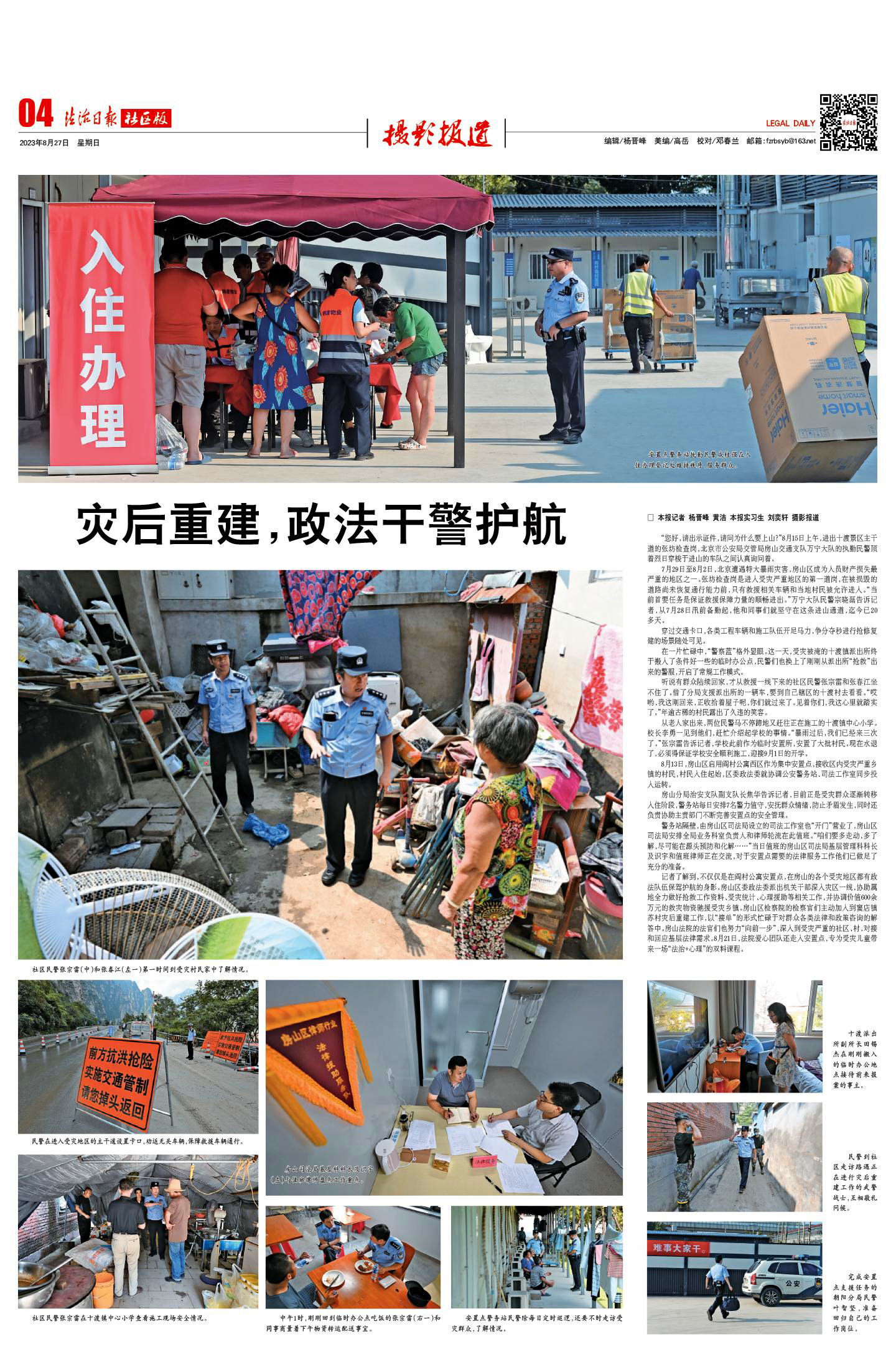 記者了解到,不僅僅是在閻村公寓安置點,在房山的各個受災地區(qū)都有政法隊伍保駕護航的身影。房山區(qū)委政法委派出機關(guān)干部深入災區(qū)一線,協(xié)助屬地全力做好搶救工作資料、受災統(tǒng)計、心理援助等相關(guān)工作,并協(xié)調(diào)價值600余萬元的救災物資馳援受災鄉(xiāng)鎮(zhèn)。房山區(qū)檢察院的檢察官們主動加入到竇店鎮(zhèn)蘇村災后重建工作,以“接單”的形式忙碌于對群眾各類法律和政策咨詢的解答中。房山法院的法官們也努力“向前一步”,深入到受災嚴重的社區(qū)、村,對接和回應基層法律需求。8月21日,法院愛心團隊還走入安置點,專為受災兒童帶來一場“法治+心理”的雙料課程。