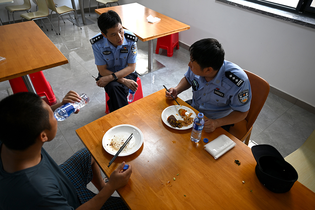 完成安置點支援任務(wù)的朝陽分局民警葉智堅,準備回歸自己的工作崗位。