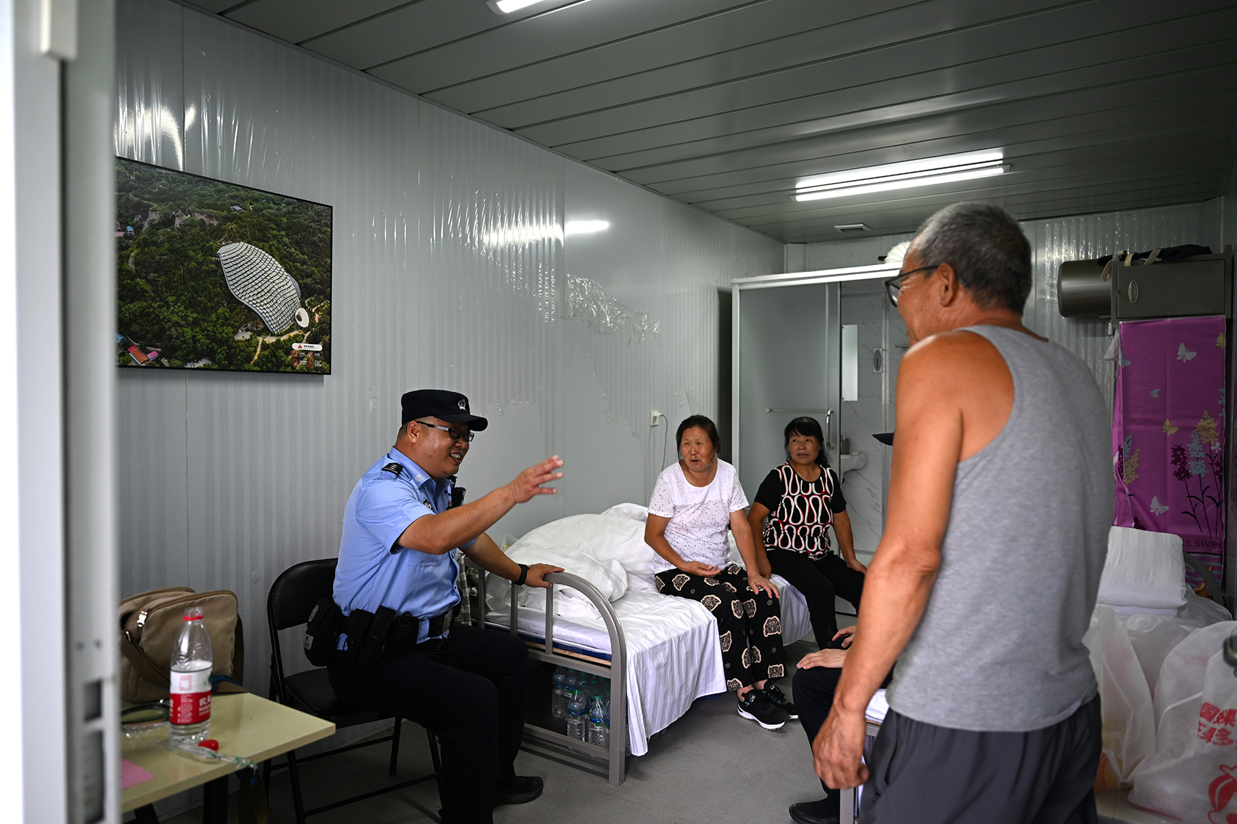 安置點警務(wù)站民警除每日定時巡邏,還要不時走訪受災群眾,了解情況。