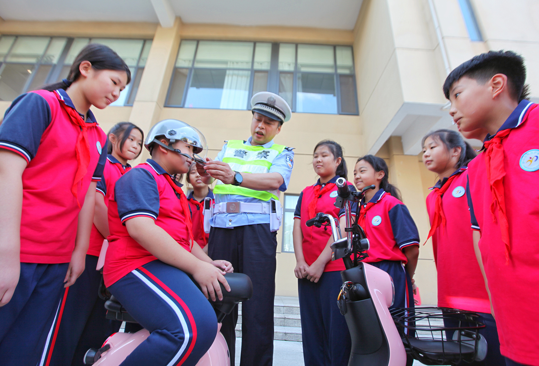 8月30日,河南省鄭州市公安局金水分局巡特警與花園路派出所的民輔警為轄區(qū)學(xué)校師生開展上好“開學(xué)第一課”活動。