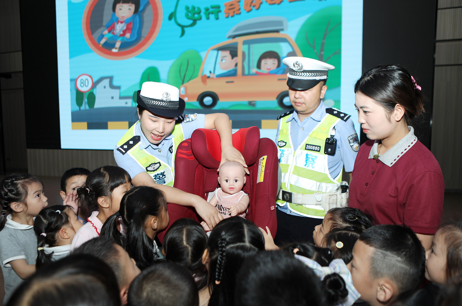 圖為民警向同學(xué)們講解交通事故案例。