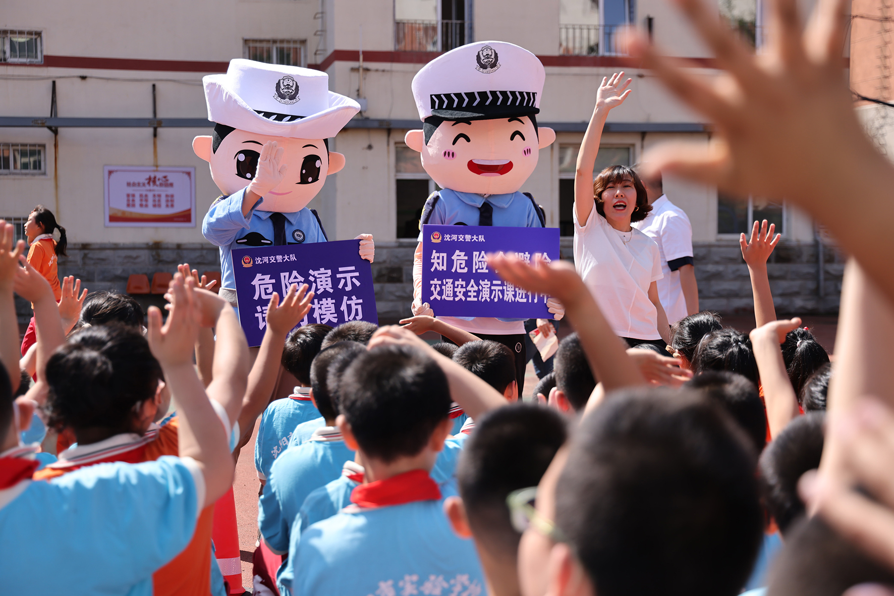9月1日,開學(xué)第一天。遼寧省阜新市公安局交警支隊(duì)太平大隊(duì)聯(lián)合太平區(qū)消防大隊(duì)走進(jìn)阜新市城南小學(xué)開展“知危險(xiǎn) 會(huì)避險(xiǎn)”校車自燃事故應(yīng)急演練活動(dòng)。