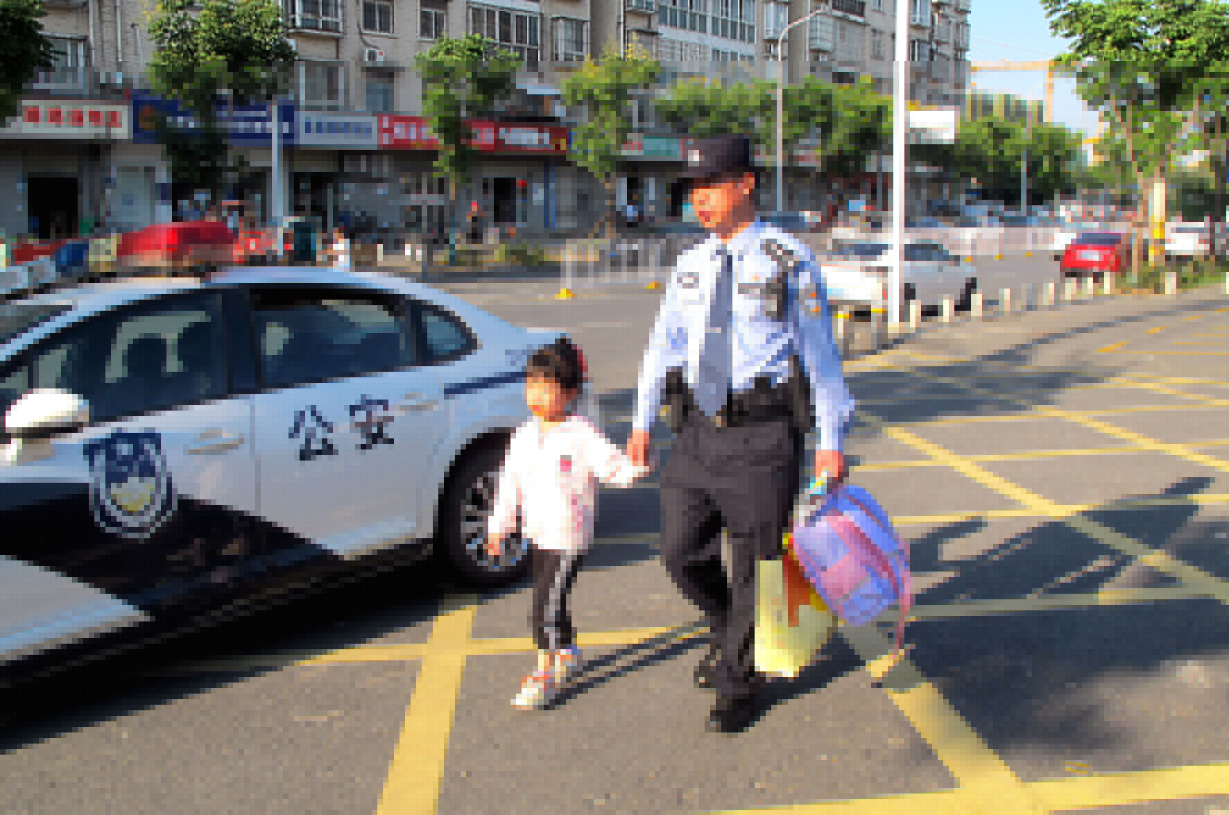 “孩子交給我,您安心去忙吧?!?月1日,湖北省武漢市公安局東西湖區(qū)分局長(zhǎng)青街派出所護(hù)學(xué)崗民警,幫助家長(zhǎng)將小朋友安全護(hù)送進(jìn)學(xué)校。