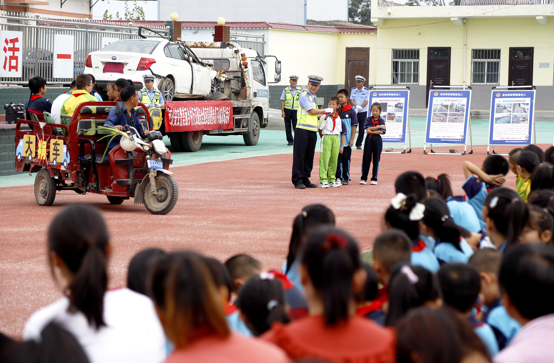 9月1日,陜西省渭南市公安局交警支隊(duì)臨渭大隊(duì)民警走進(jìn)農(nóng)村小學(xué)開展“交通安全第一課”活動(dòng)。