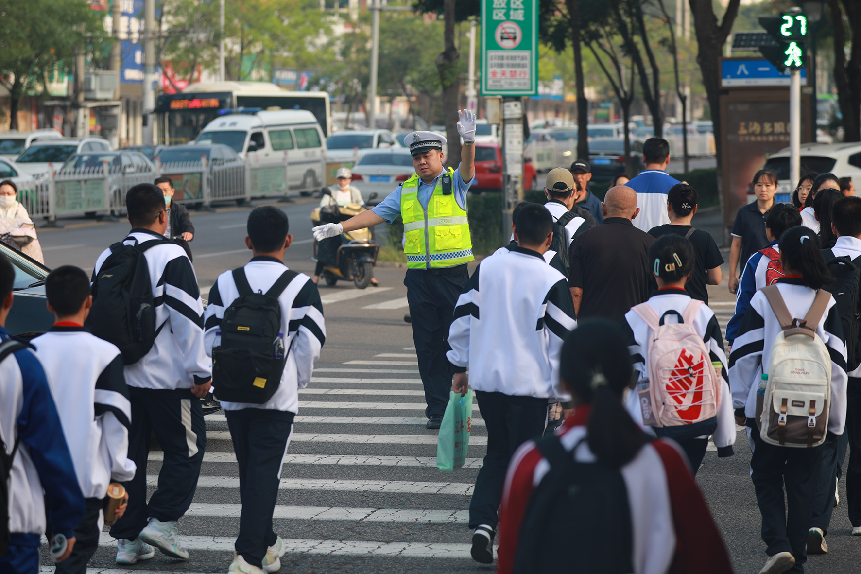 9月4日,江蘇省宜興市公安局民輔警開啟新學(xué)期的“護(hù)學(xué)行動(dòng)”,全力守護(hù)師生的出行安全。