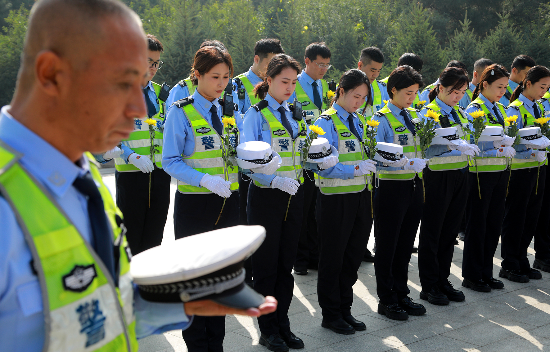 9月27日,遼寧省阜新市公安局交警支隊海州大隊民警在三一八公園烈士紀(jì)念碑前舉行紀(jì)念烈士活動。