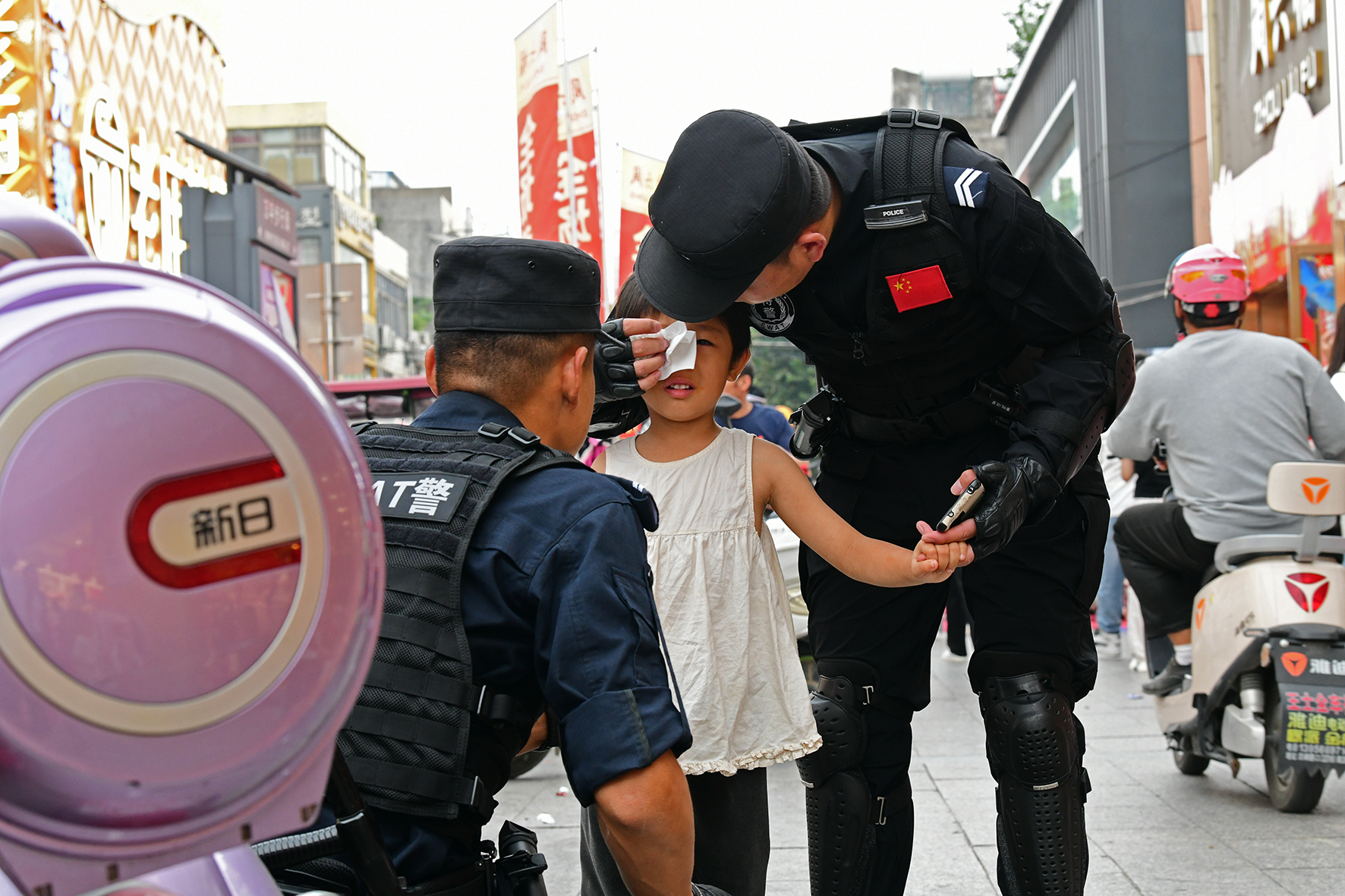 10月1日,安徽省阜南縣巡防大隊民輔警在城區(qū)萬宇商業(yè)街區(qū)巡邏時發(fā)現(xiàn)一名走失幼童。經(jīng)過半小時的尋找,終于在一地下商場內通過喊話找到了幼童家人。