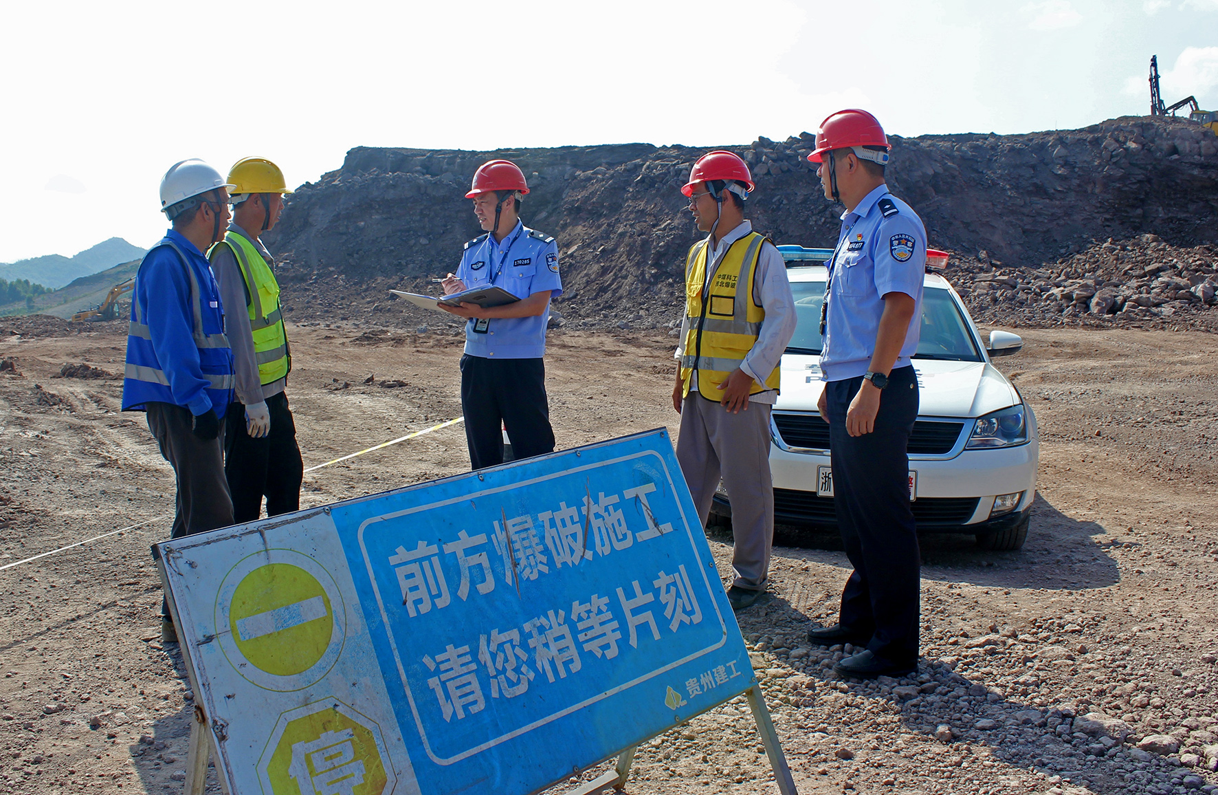 10月3日,浙江省臺州市天臺縣公安局治安大隊對某園區(qū)爆破作業(yè)現(xiàn)場進行實地監(jiān)查,強化防范措施,消除安全隱患。