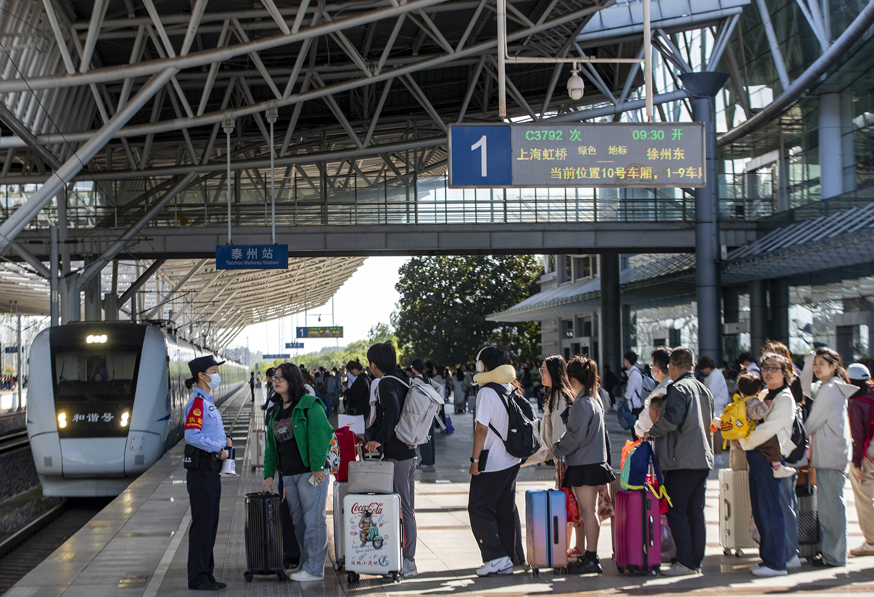10月5日,南京鐵路公安處泰州站派出所加強警力部署,強化重點部位和人員密集場所的巡查,全力服務返程高峰。